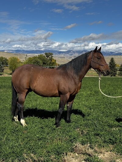 Boon is a young horse with 120 days of training. Boon has three comfortable gaits (walk, trot, canter) under saddle. Boon has a strong foundation and is ready for his new partner to take him in any direction.