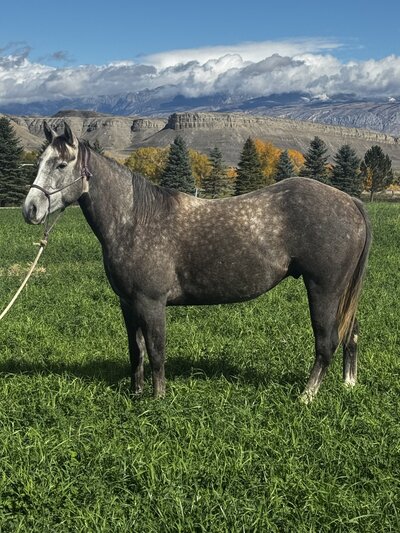 A beautiful grey gelding with a gentle and intelligent personality. Captain is athletic and easy to work with. Captain walks, trots, and canters under saddle comfortably with smooth gaits. Captain trailer loads with ease, rides indoor and outdoors.